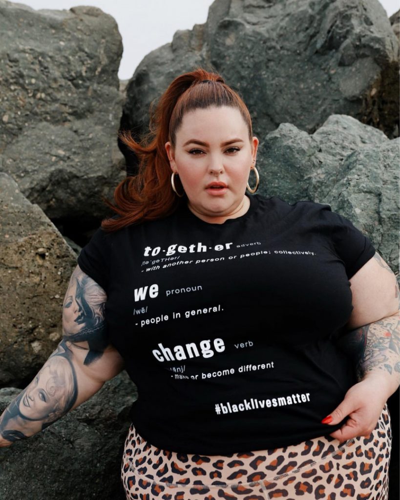 Here’s famous plus size model Tess Holiday serving up her classic fierce look with a shirt that encourages change, acceptance, and equality.