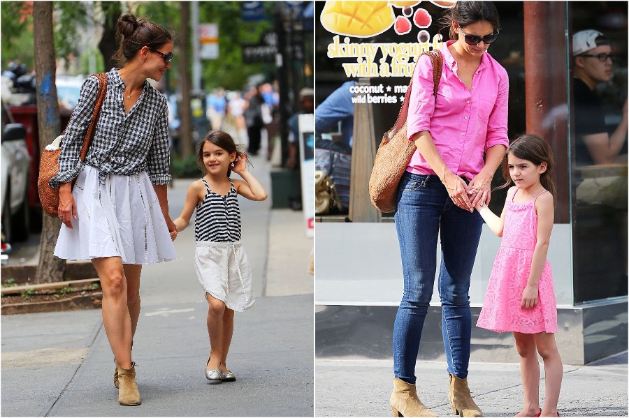 Katie Holmes didn’t exactly match the outfits of her daughter but they’re clearly doing some serious color coordination.