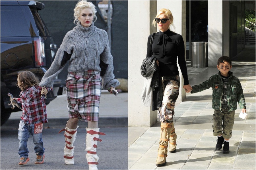 Gwen Stefani knows how to match with her son. While camo pants are an obvious choice, it’s the checkered skirt and shirt combo that looks super cool.