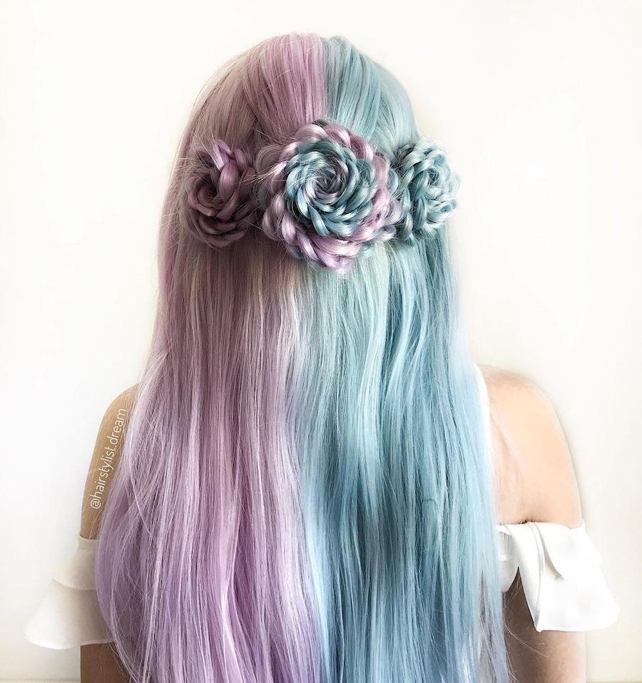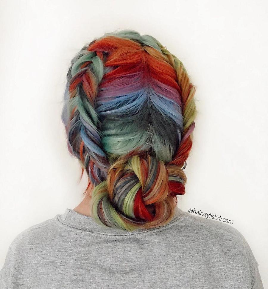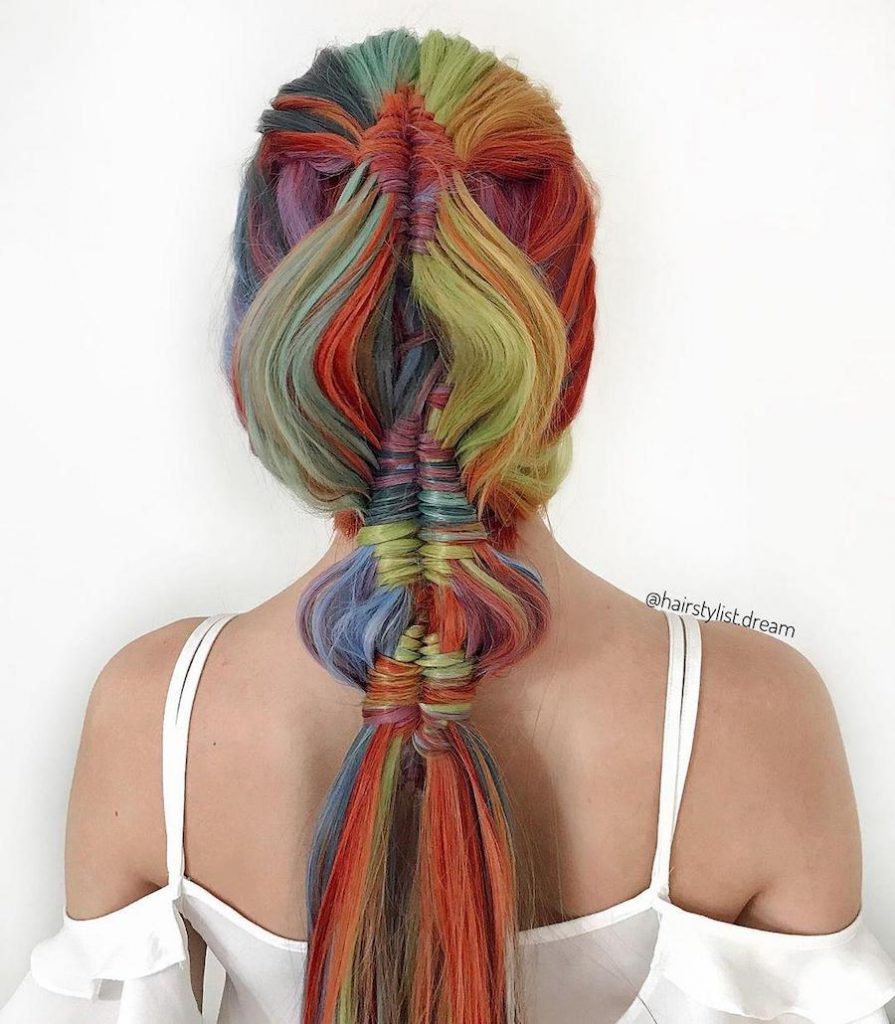 9. Another lovely rainbow hairstyle that incorporates a variation of a fishtail braid. Perfect for festivals, weddings, fancy events and just getting the hair out of your face. I mean, is there an occasion this wouldn’t be appropriate for?