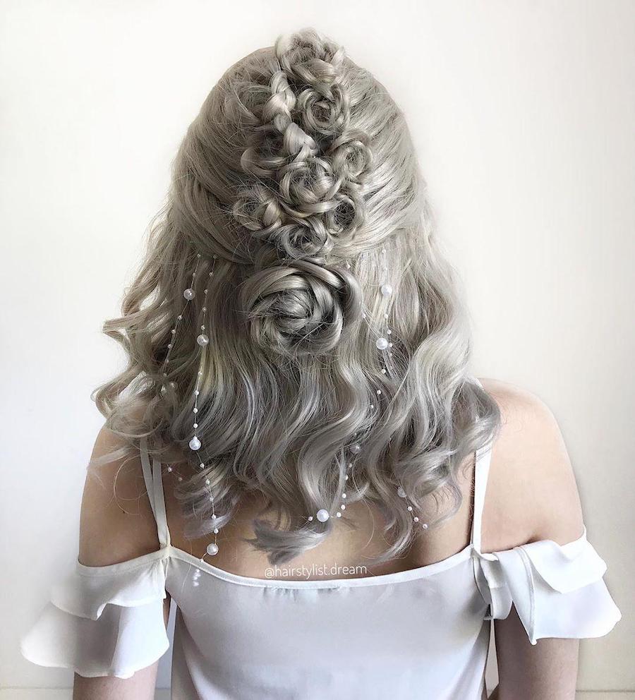 1. Braided flowers are actually way simpler to do than you imagine. It’s all about creating a simple braid and then pulling out the sides to give more volume and pinning it in the shape of a flower.