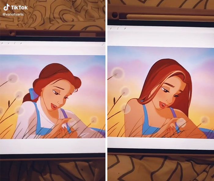 @vanotyarts Saw people doing “glow ups” of Disney characters so I decided to do my own. I went for a more subtle change! #disneyprincess #artchallenge #belle