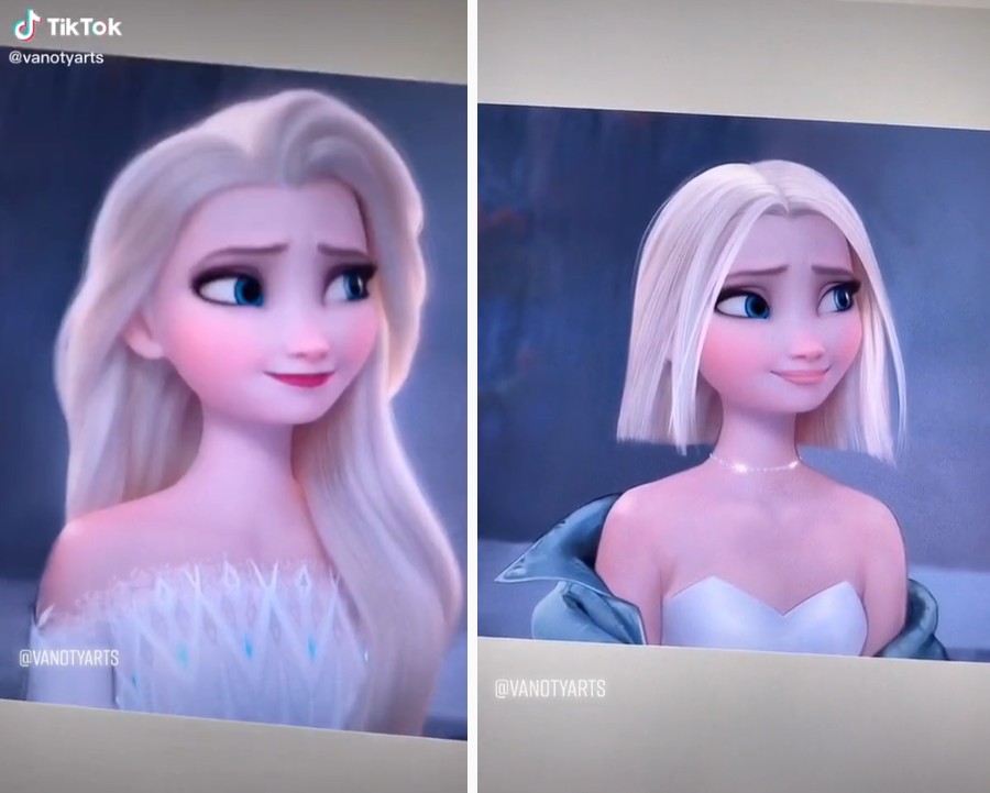 @vanotyarts It was hard to transform Elsa to look modern when they already did that in Frozen 2 😂 #elsa #frozen #disneyprincess #gloupdisney