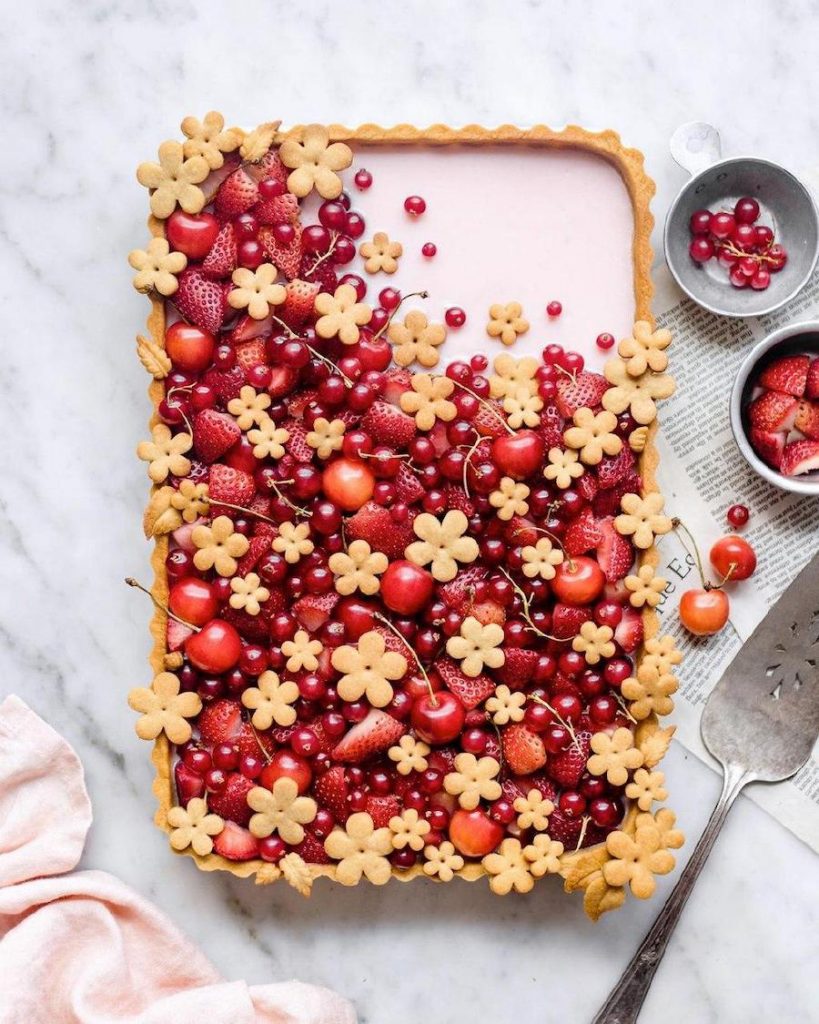 We’re not sure what we’re more impressed with, the genius idea of making this or the patience and time it took to decorate it so beautifully. This is definitely a tart you can make for a special occasion. It’s that impressive.