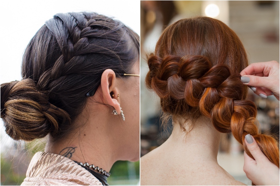 Doing an upside down French braid is a great way to spice up an updo like buns or a high ponytail. The easiest way to do it is to literally flip your hair upside down and do a French braid starting from the nape of your neck and go towards the crown. From there you can either tie it off into a ponytail or finish up the braid and wrap it into a bun.