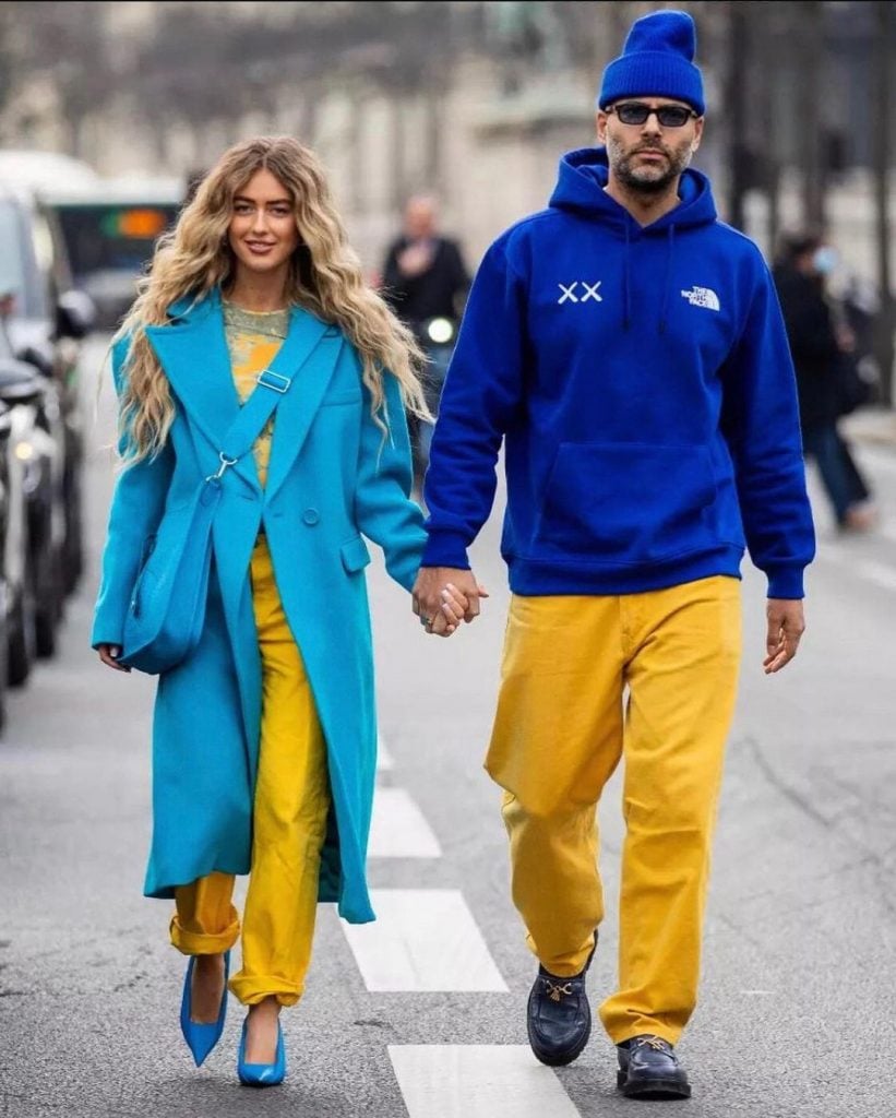 In one post, Ukraine’s Instagram shows how Emili Sindlev, a fashion stylist and influencer from Denmark, and Danish fashion stylist and consultant Mads Emil Grove Møller hold hands in fashionable blue and yellow outfits for Ukraine. They made this appearance at Paris City Fashion Week, with a that caption reads, “Freedom Blue, Energizing Yellow #stoprussianagressioan #standwithukraine.” One comment on this post was emphasizing how these celebrities are using their influence to motivate others to help: “Each person has a power and these influencers can motivate people. So each and every support is appreciated!”