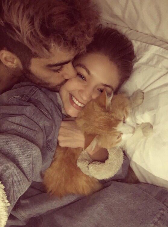 On Malik’s birthday, Gigi posted a pic with her wearing a Z necklace, which we can only assume stands for Zayn. The caption read “ZDAY.” The same month, she starred in his music video for “Pillow Talk”, where their steamy chemistry was undeniable. This entire winter, she kept posting pics of Zayn snuggling up with her kitty cat.