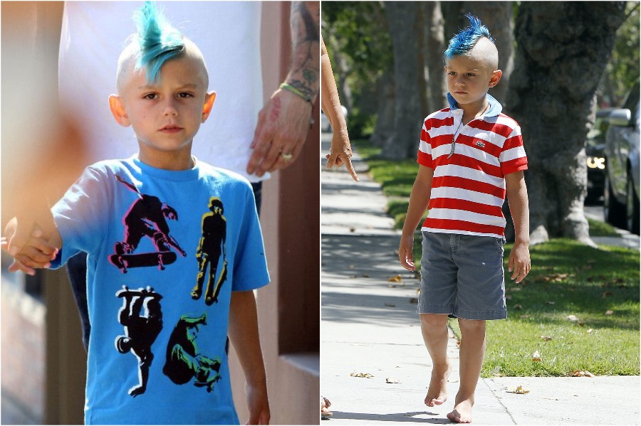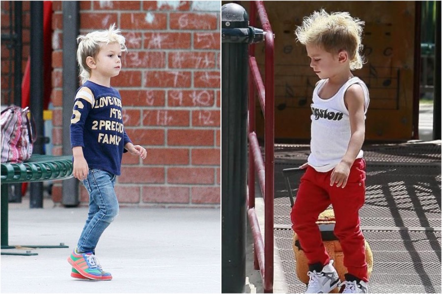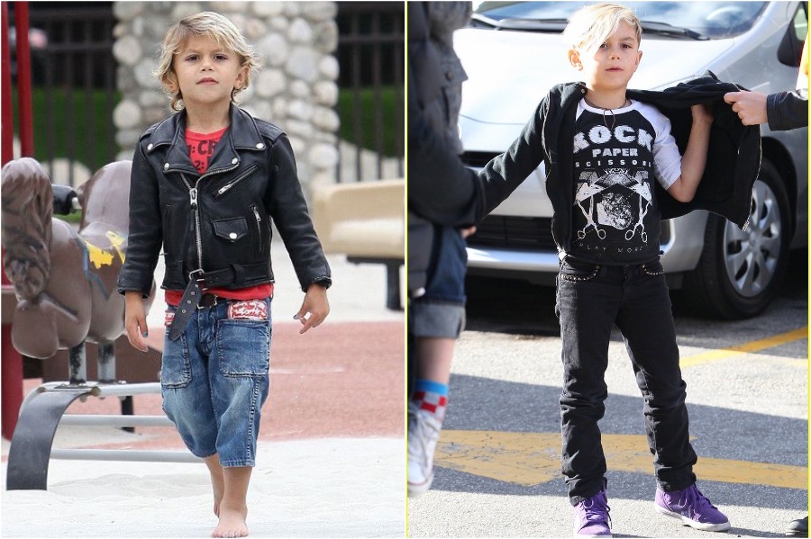 If you look back at Kingston early childhood photos you’ll see that he definitely got to express himself however he wanted. Gwen believes that it’s every child’s right to decide how they want to look, how they want to dress and how they want to identify and express themselves. And if you consider that Kingston grew up in a family of musicians who dress up for the performances and generally have quite a cool style, it’s really not that surprising that we’ve seen him rock various hairstyles, nail polish and that even as a kid he wanted his hair dyed bright colors. The outfits Kingston has rocked over the years are also pretty cool. Let’s take a look at his little style evolution, shall we?