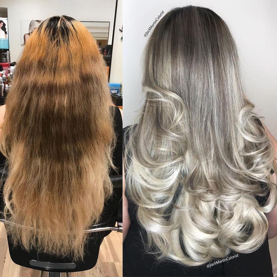 3. Sometimes the hair is already too damaged to bleach it and go gray, so Jack does what he can to make it healthier and gives the client a timeframe of how long it’ll take to get to their dream color.