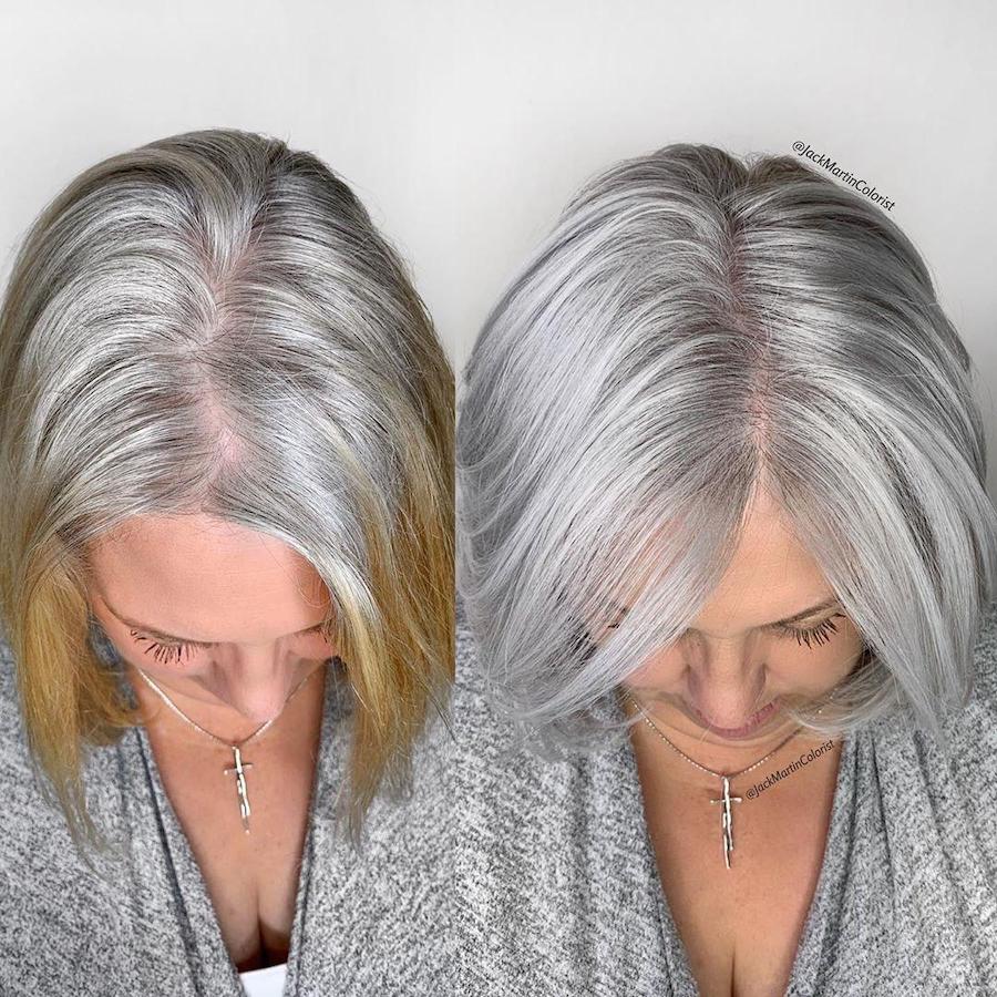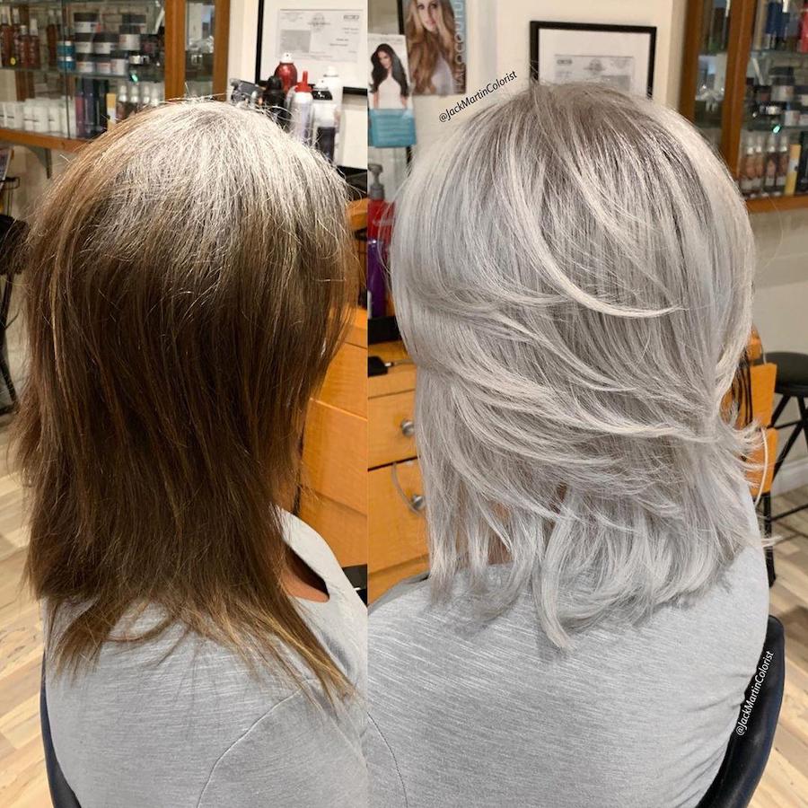1. The process of getting personalized gray hair takes a while, but the results are clearly worth it. Jack often asks his clients to come in with a couple of inches of root growth, so that he can properly analyze the color and undertones in order to get it right.