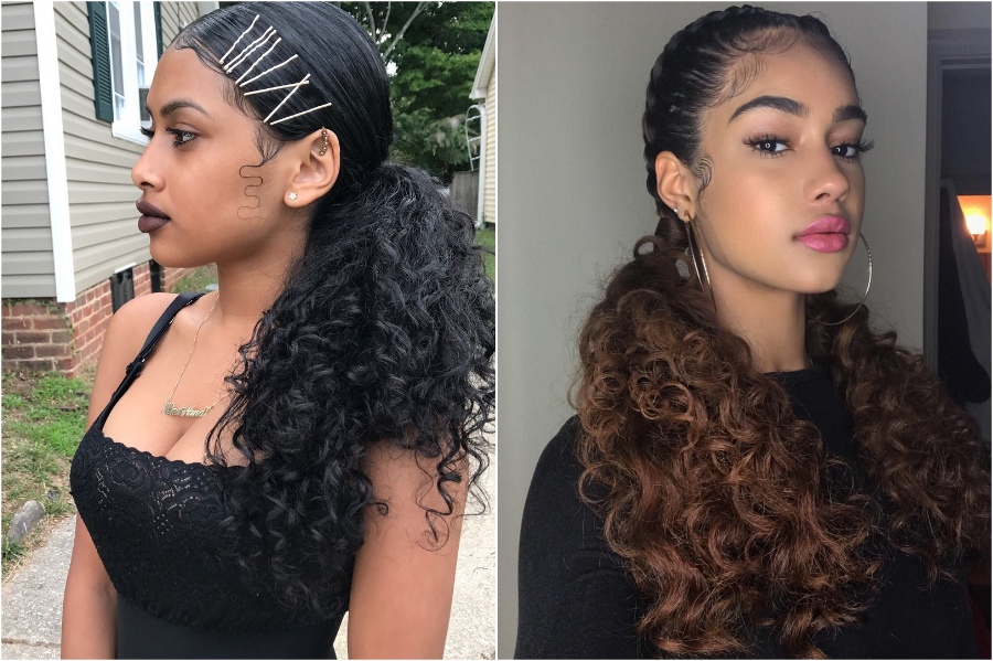 The main complain most curly-haired people have is frizz and out of control volume. Well here are a few hairstyle ideas that might work. Half up half down hairdos are great for taming the roots of your hair while embracing the voluminous curls. And sleek low ponytail with a poofy end is the epitome of chic if you ask me.