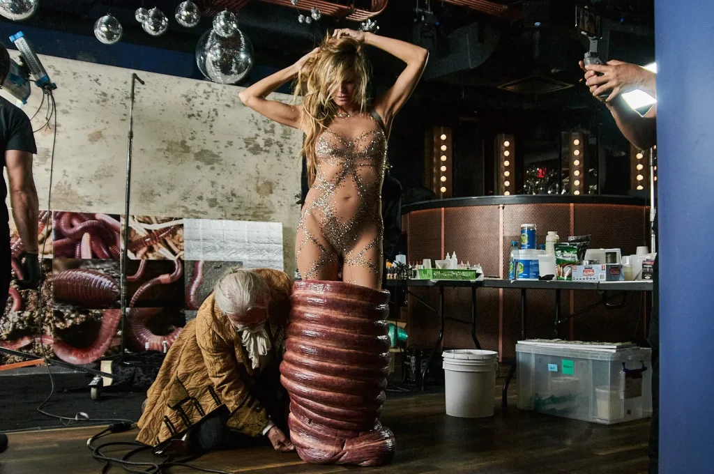 If Halloween is a time for transformation, then Heidi’s 2022 costume was a metamorphosis masterpiece. She began the night as a horrifyingly lifelike giant earthworm (a full-body prosthetic that eliminated any trace of her famous figure). But halfway through the night, she shed her worm skin to reveal a nude, crystal-covered bodysuit beneath, channeling Britney Spears’ “Toxic” video with glittering precision. It was surreal, theatrical, and perhaps the only time you’ll ever witness a woman emerge from an invertebrate shell, resembling a Vegas showgirl. And naturally, she made it work.