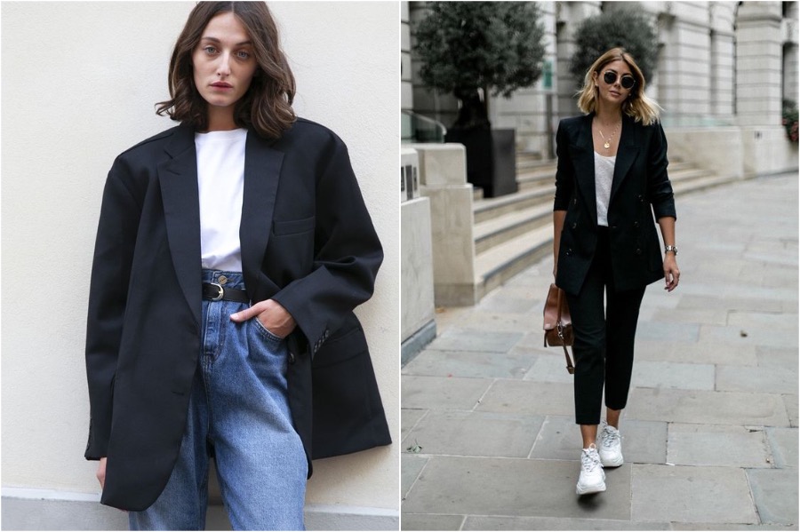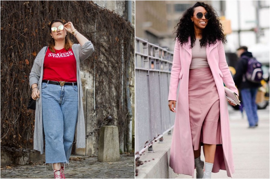 High waisted jeans are your best friend when it comes to looking skinnier, they just hold you in in all the right places and show off your curves in the best way possible. But another thing you can do is wear a blazer with them to further streamline your silhouette. Just make sure to wear a blazer with a v-neck collar and in the right size. You can also wear it open to create that line in the middle that will elongate you.