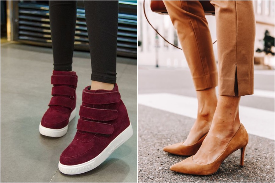 In order to look slimmer you might also want to look taller, it’ll even out your proportions a little. The best way to do that is to wear pointed shoes, pointed heels are best, but also just in general, matching your heeled shoes to your skin tone is the best thing because they’ll just blend in and give you the illusion of longer legs. Nude shoes for the win!