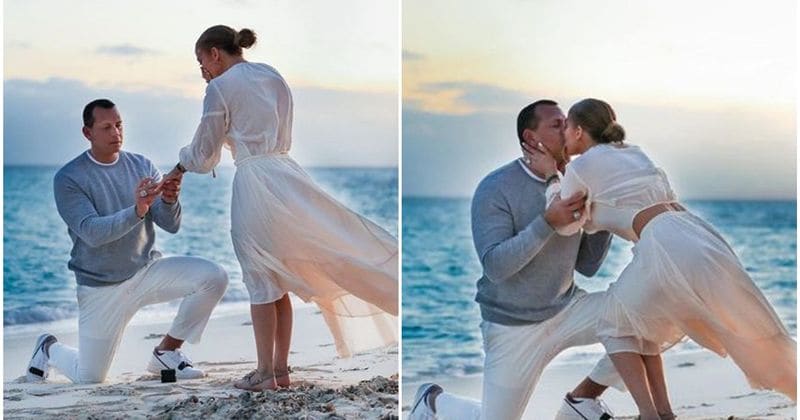 A.Rod and J.Lo are one of our favorite love stories of all times. They met in the early 2000s, but the sparks really flew in 2017. Two years later, they were engaged on a beach vacation trip taken for their second anniversary. The breathtaking ring was blinding for those who saw on social media.