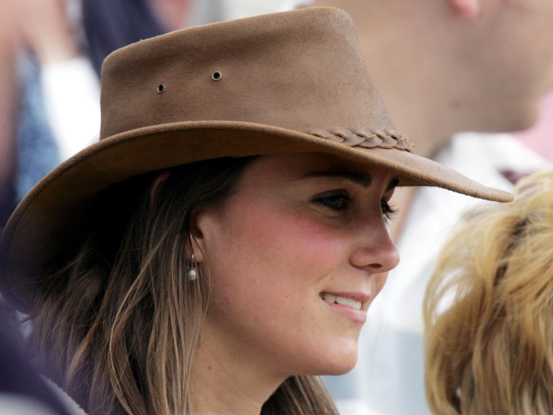 3. The very polished Middleton is seen in a variety of fancy and very expensive hats, but rare a cowboy hat. She looks more like Crocodile Dundee here than a member of the Royal family, but the look totally suits here. Here she is at the 2005 Gatcombe Park Festival of British Eventing.