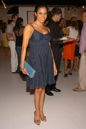 9. This is a photograph of Meghan captured back when she was with her ex in 2005. She still has that radiant smile, but holds a smile clutch and remains dressed down with a comfy, loose spaghetti strap dress. This looks like a Meghan from another planet, but one that we really want to be best friends with.