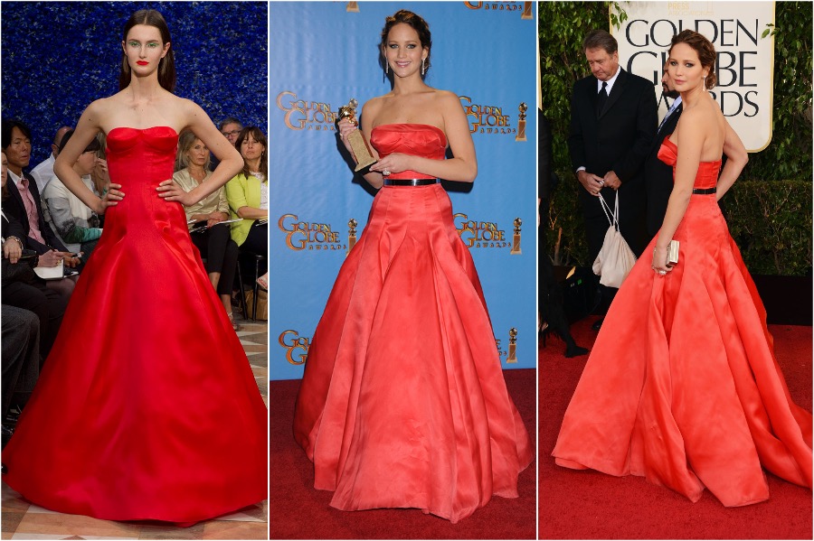 Remember when Jennifer Lawrecen snagged a Golden Globe in 2013? That’s a Christian Dior dress from the fall collection and we love that she chose to make it her own by slightly changing it up and accentuating the waist with a metallic waist cincher. This just goes to show that no matter how cool a designer gown is you can always make it your own and make it work for you and your body shape.