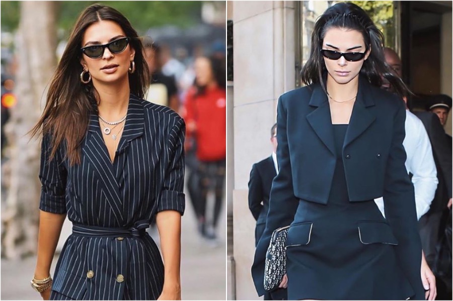 13. These girls mean business in their black blazers. But Emily’s going for business casual and Kendall is dressed to impress. Both went for a pair of trendy sunglasses as an accessory.