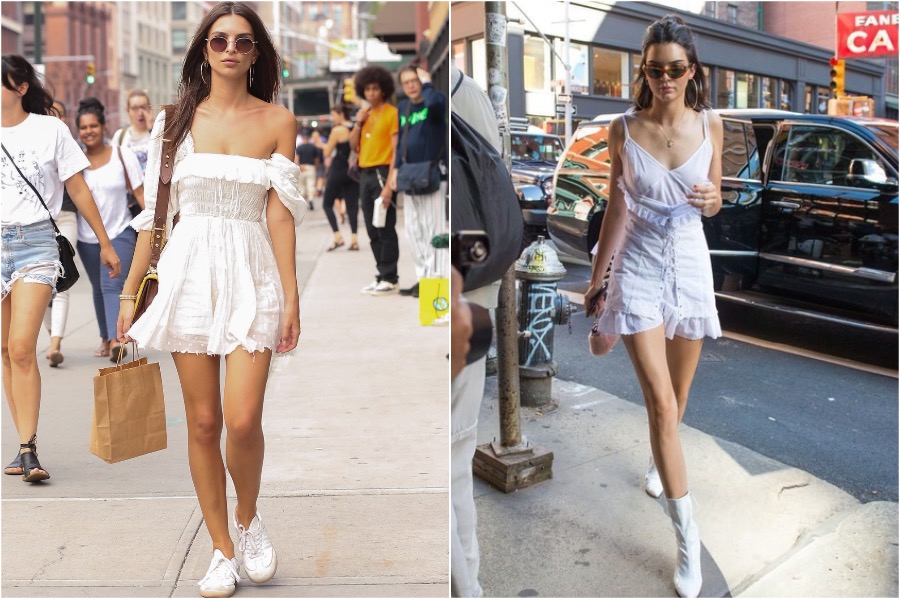 3. White summer dresses are all the rage these days, so we see how this is just a trend that both of them could like, but those do look similar. Except, as you can see, Emily again goes for effortless and casual with her sneakers and Kendall is rocking some pointy white boots.