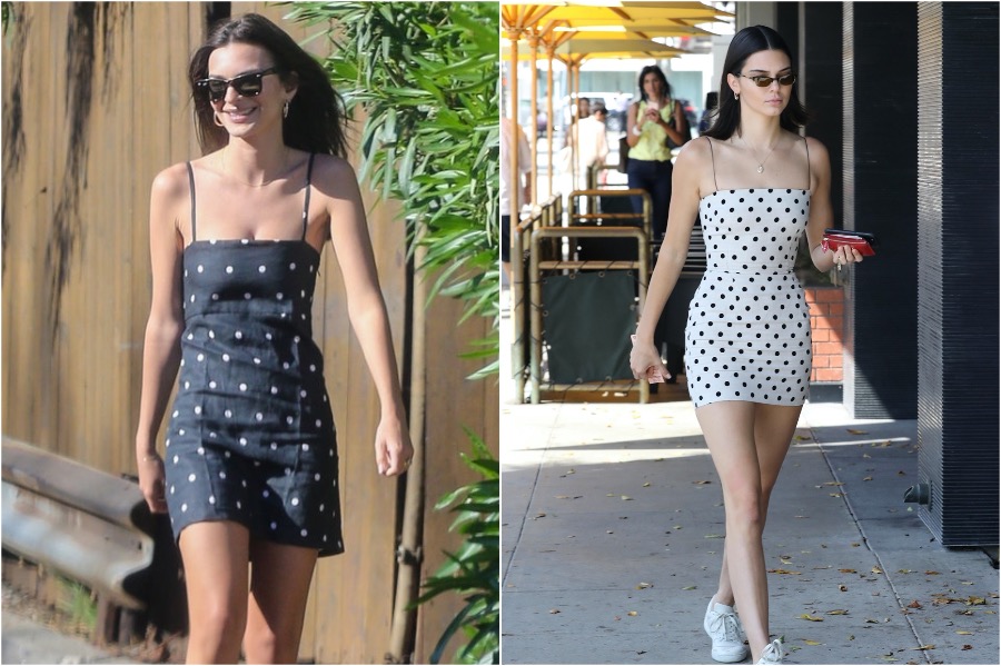 5. Here’s another instance of both Emily and Kendall wearing polka dot outfits, except this time they went with silk, a bigger pattern and made it glam for the events they were attending.
