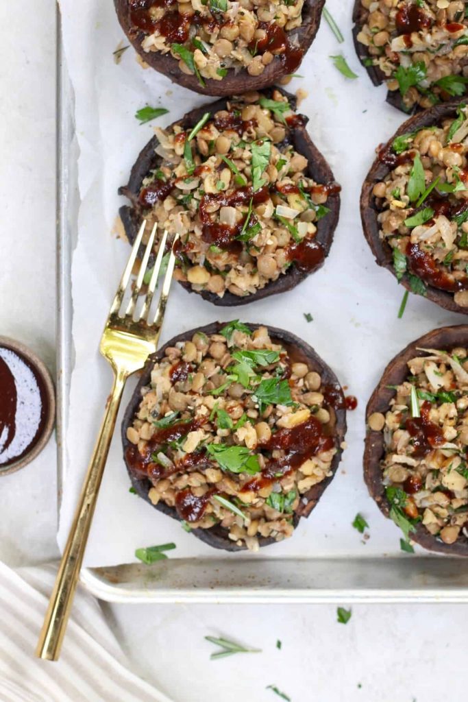 Portobello mushrooms are the meat of the veggie world – they’re juicy, have a good bite to them, and an earthy flavor that blends well with other ingredients. This one is stuffed with herbs, lentils, and an acidic balsamic apple glaze that’s bound to make your tastebuds explode.