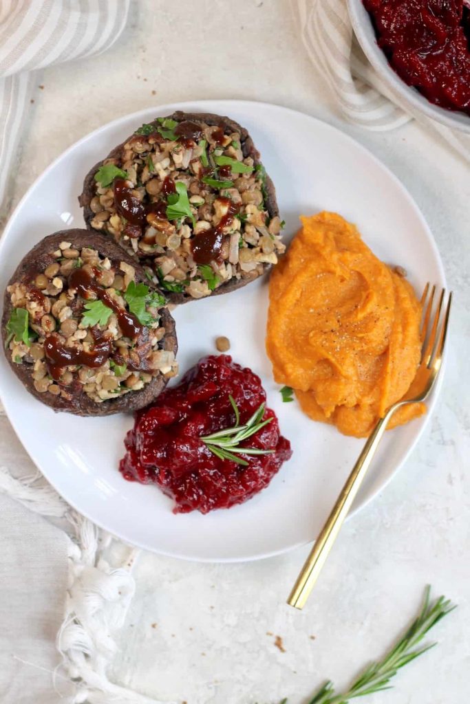 8. Portobello Boats with Rosemary Lentil Crumble and Balsamic Apple Glaze
