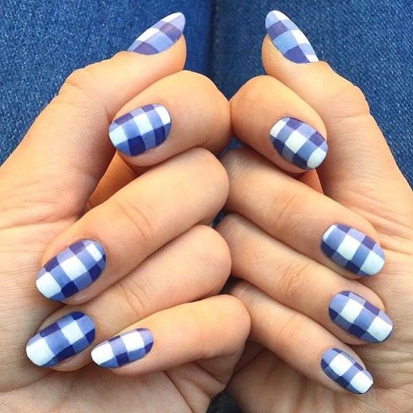 A fancier version of plaid, this chic, checkered style screams elegant Jackie O but also lets you experiment with prints without getting too crazy on the color spectrum. Black and white goes with everything, so what are you waiting for? This is the ultimate accessory to pair with an LBD. This looks rather difficult to DIY, so maybe opt for a salon mani.