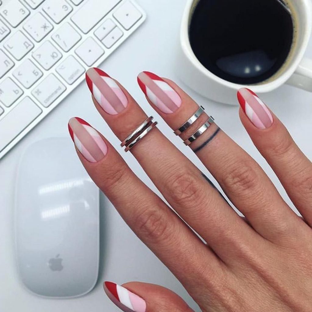 There are no rules in modern art, which is what makes it so fun to experiment when it comes to your manis. Turn yourself into a Picasso of your own making, or ask your favorite nail technician at the local salon to take creative liberties. Modern abstract nail art can include block-like shapes, working with negative space, a series of dots, lines, squiggles and more! We love a geometric interpretation.