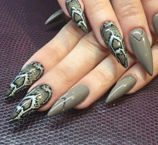 Go back to the future with sharply metallic manis – our favorite are gold and silver, of course. This works best on long nails, since that shine requites a bit of them getting that can make shorter nails look even stubbier. This look will transform you into an Ex Machina robo-babe, and works with a range of outfit options. Start with a single nail if you’re afraid the look is too glitzy.