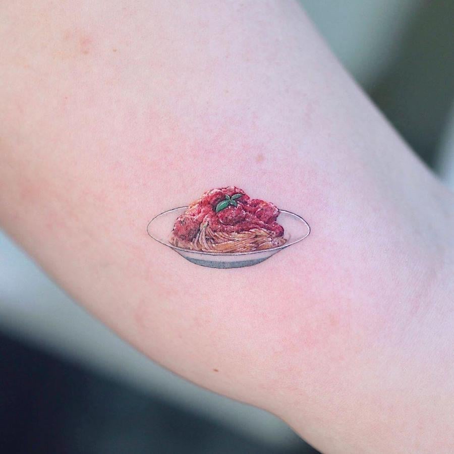 2. Have you ever seen a more appetizing plate of pasta? It’s actually quite impressive how much detail the tattoo artist managed to fit into such a small tattoo.