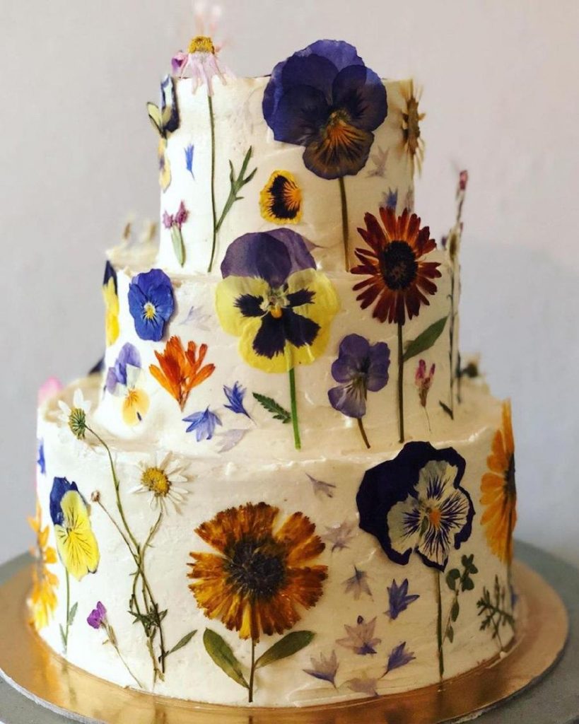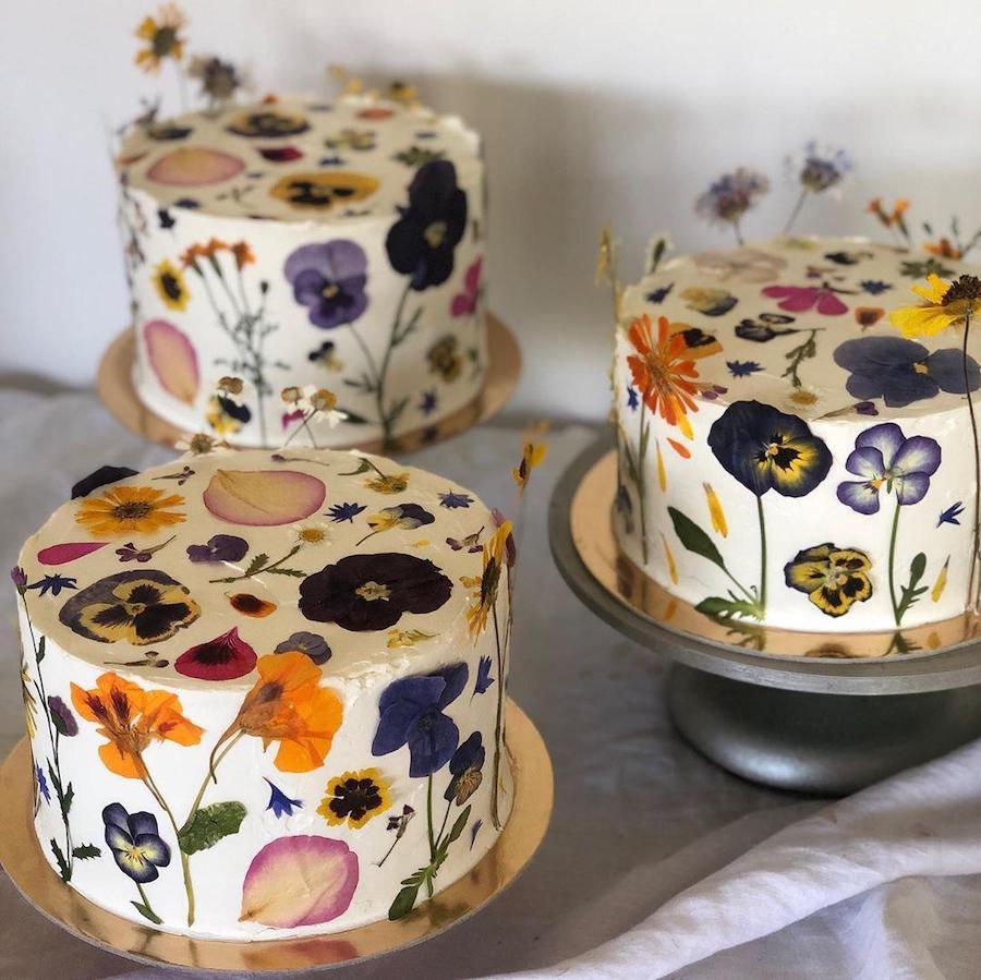 6. Pressed flowers are clearly the ultimate way to decorate cakes. Once you see these, nothing else can quite compare to how charming this looks. And all of these pretty edible flowers were hand picked and pressed by Loria.