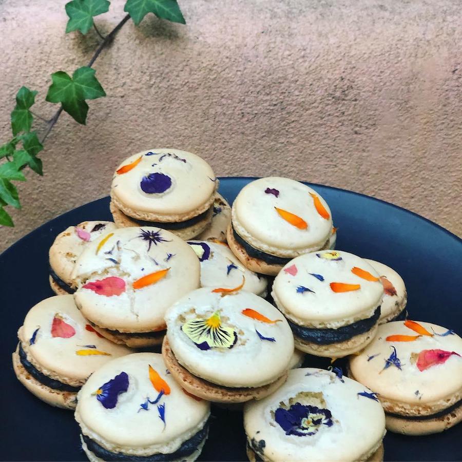 9. Loria captioned this with “Victorian-esque Goth Romance Macarons baked with edible fleurs + filled with black creme”. Couldn’t make it sound better if you tried.