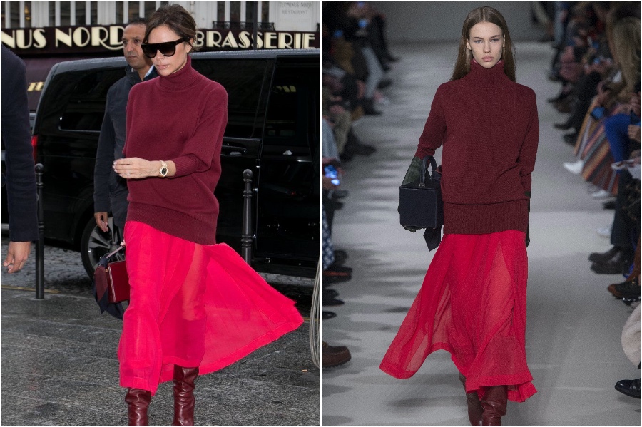 10. In this instance, Victoria didn’t even bother to change anything. Clearly, the idea seemed perfect to begin with so she just wore the same thing the model is wearing on the runway.