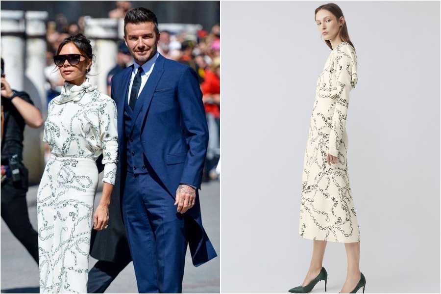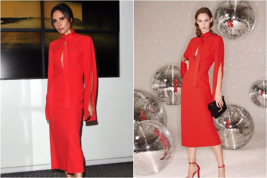 3. Clearly, this dress is statement enough that you don’t even need to think of accessories. As you can see Victoria styled it the same way as she did it for the model. Pointy shoes are all you need, but in her case, she went for heels to add a bit of height.