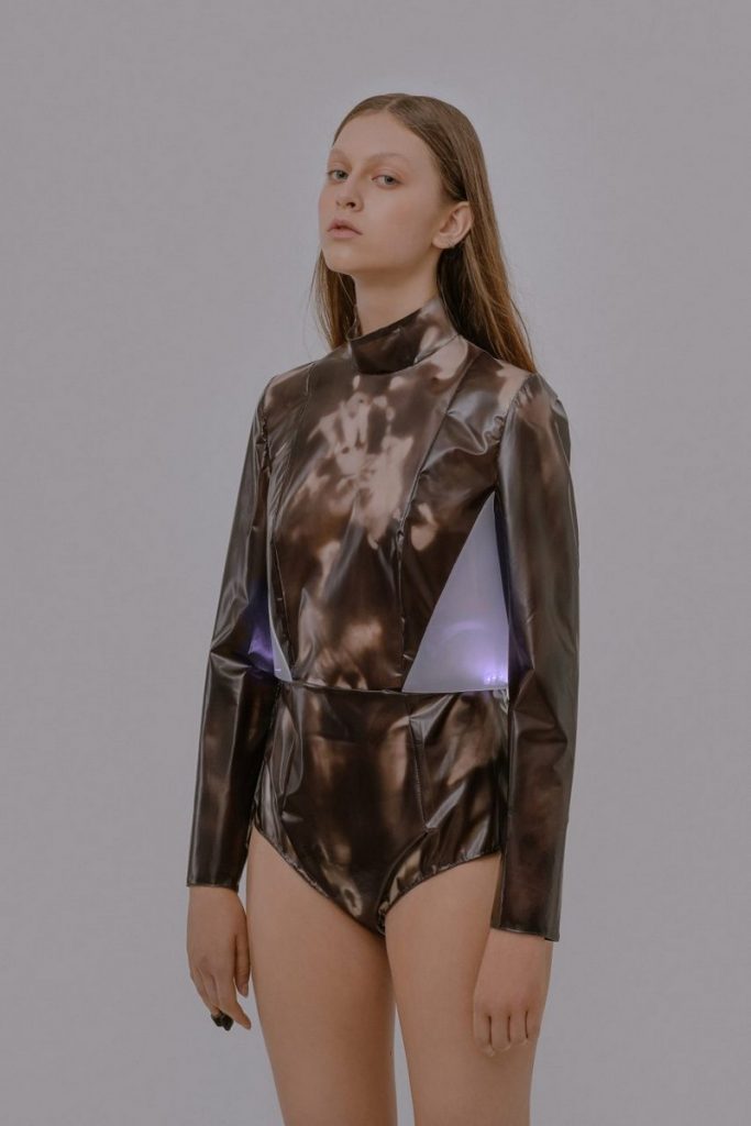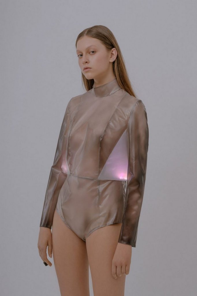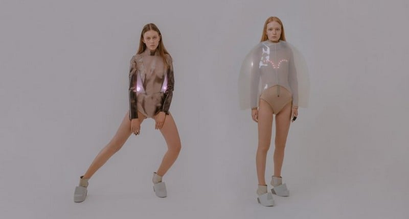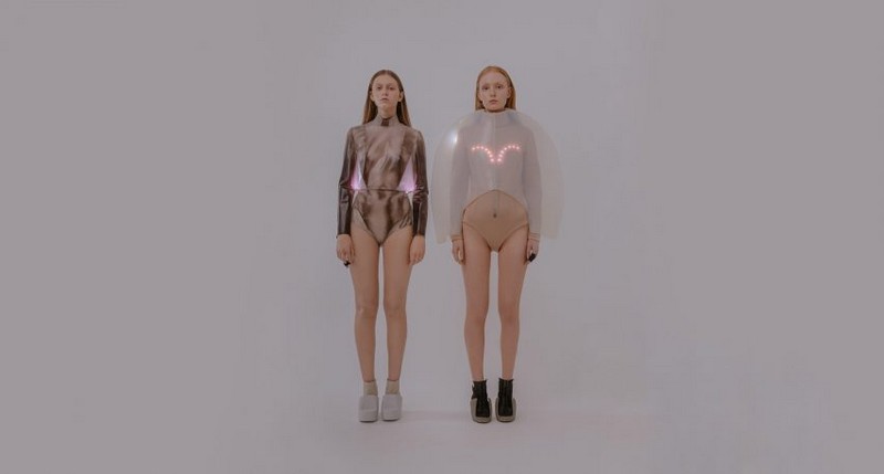 The main idea of the collection is to make us focus more on our bodies and stress levels. The technical wizardry behind it basically has the tops measure stuff like heart rate, temperature and your galvanic skin response with a whole bunch of sensors. Those sensors then send a signal to some lights in the clothes that’ll basically show everyone you’re stressed out. One top even changes from black to translucent depending on your emotional state of mind which I doubt helps with the calming down thing, but if nothing else it’s very technologically impressive.