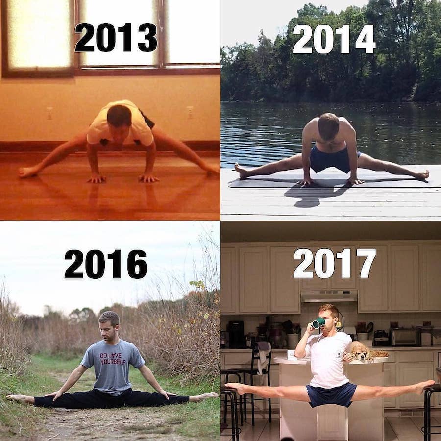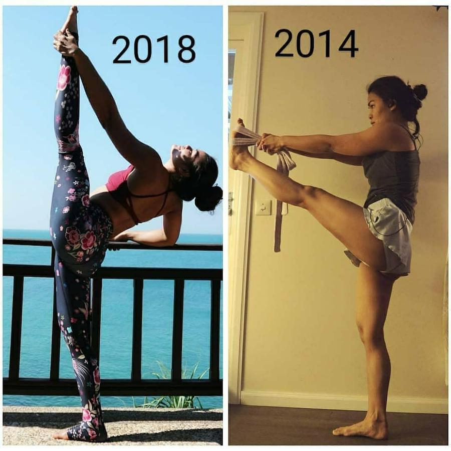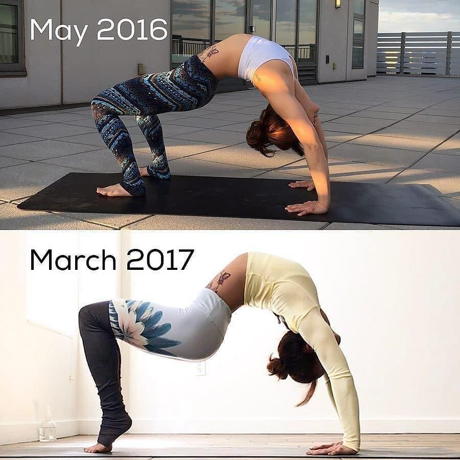 Yoga is one of those things you either hate or love. Some people say it’s a life saver, something that changed their life for the better and brought them a lot of peace, calmness and a lot of health benefits both mental and physical. Others can’t stand the idea. It’s too slow, too difficult, their body doesn’t bend that way and the whole spiritual side of it irritates them. And while yoga isn’t for everyone, one thing’s for sure, you can’t be forced into doing it. Everyone who enjoys yoga and practices it regularly has come to it on their own at the right time in their life. And if you’re discouraged by pictures of people doing complicated yoga poses and feel like you’ll never be capable of doing them – perhaps it’s just not your time yet. Because that level of flexibility and strength that you see practiced by yoga enthusiasts takes time and effort. It literally takes people years of trying little by little to achieve the results we then see in a cool Instagram post. So let’s take a look at some progress photos and get inspired.