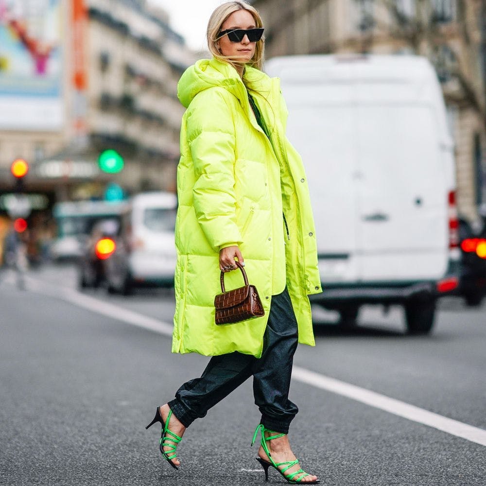 We’re celebrating getting our social lives back, so why go with the same old boring black dress that everyone will expect? Instead, consider wearing a black or understated coat, with a neon minidress underneath, in everything from sequin to leather.